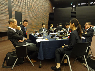 (就活懇談会) 72期〜74期の先輩弁護士と今年司法試験に合格した卒業生34名とで自己紹介の後、就職全般について説明が行われ、その後個人の質問に基づいて懇談しました。終始和やかでざっくばらんな雰囲気で会が進められました。